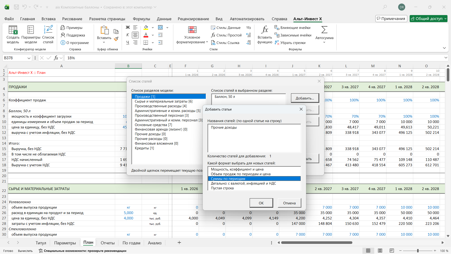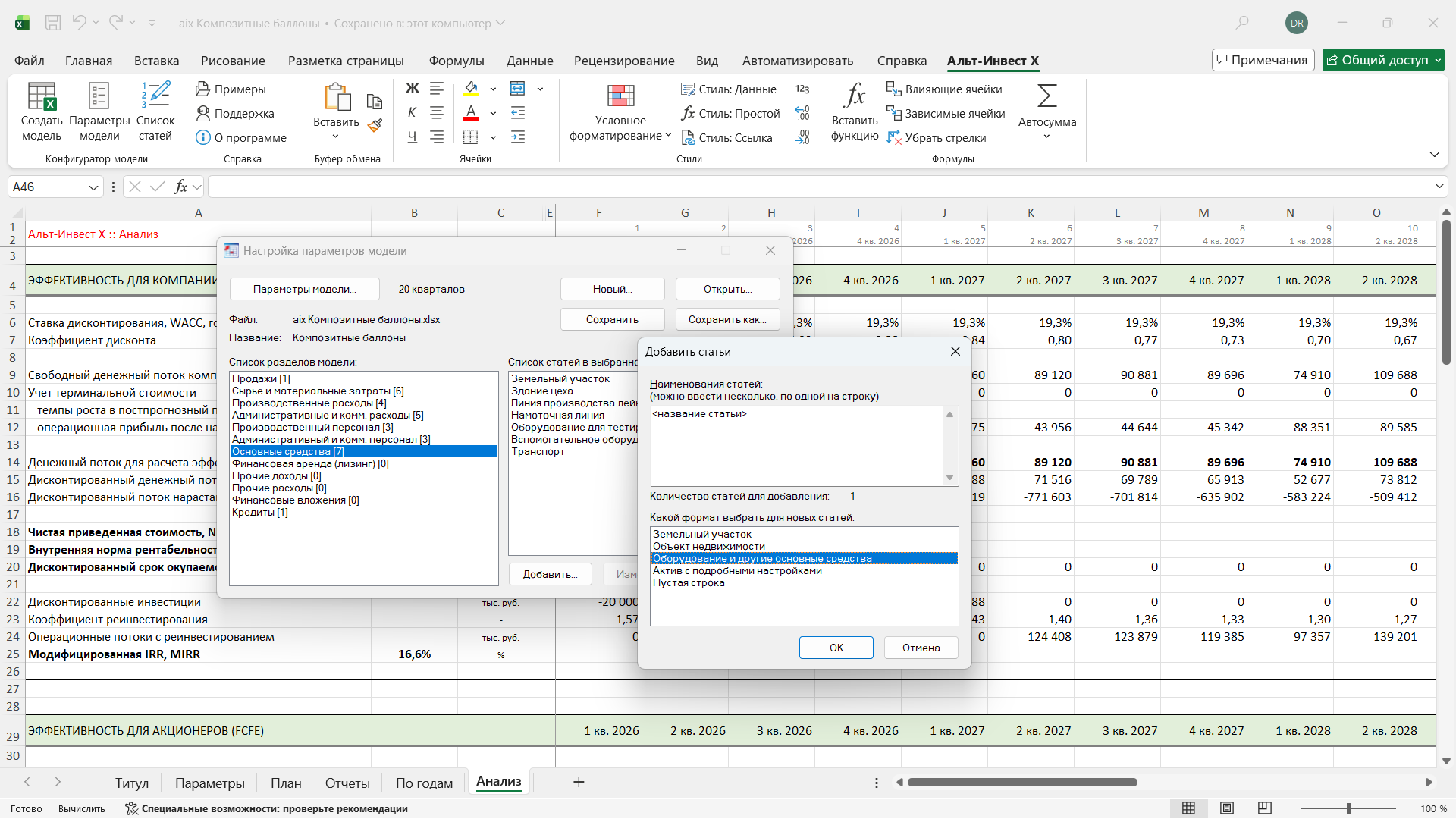 В любой момент откройте конфигуратор Alt-Invest X, чтобы изменить структуру модели: добавить или удалить элементы.